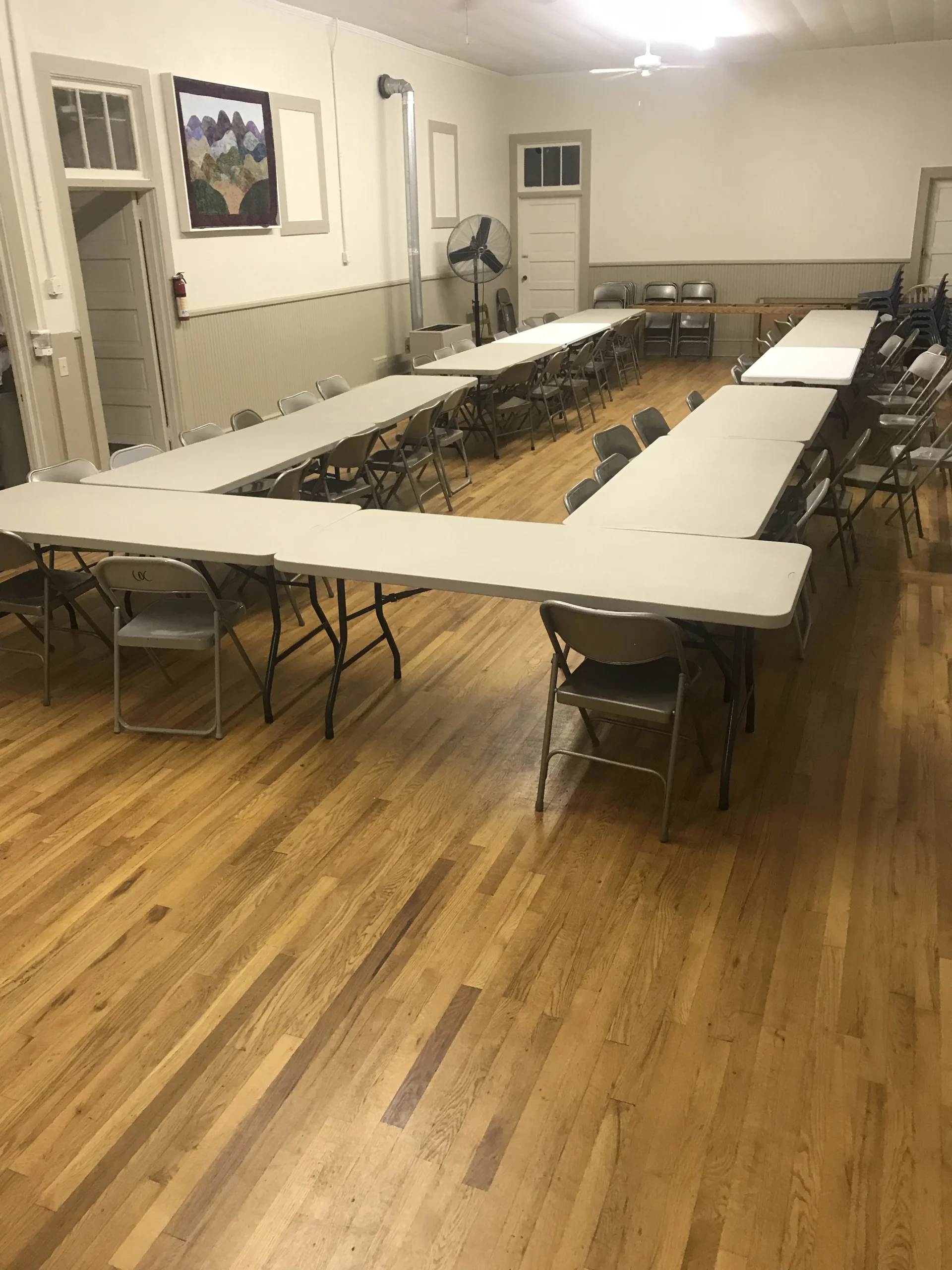 - 16 six-foot tables and 3 eight-foot tables, plus ample chairs